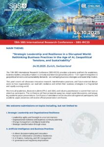 We are delighted to invite you to the 13th SBS International Research Conference (SBS-IRC25), hosted by SBS Swiss Business School. This year’s theme is: